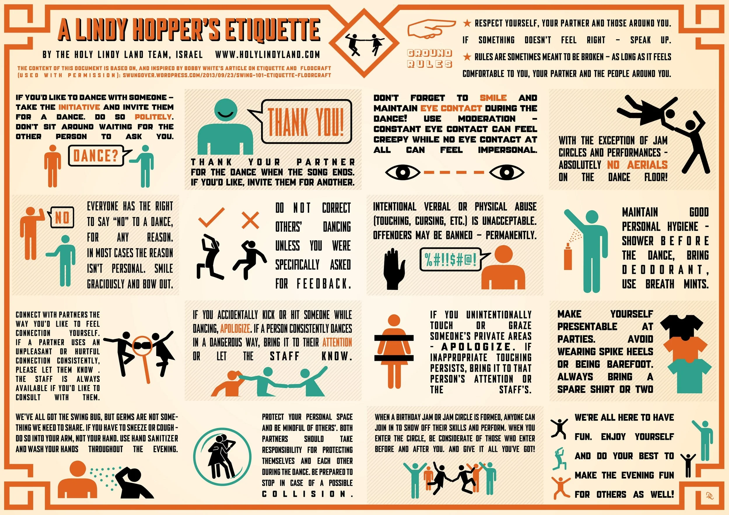 etiquette version 1 http://www.holylindyland.com/wp-content/uploads/2014/03/Lindy-Hoppers-etiquette.jpg